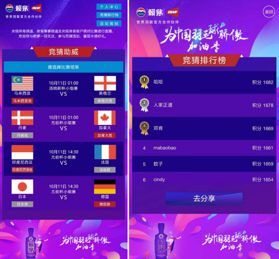 竞猜助威风采加油 全程创新互动为国羽战将加油助威